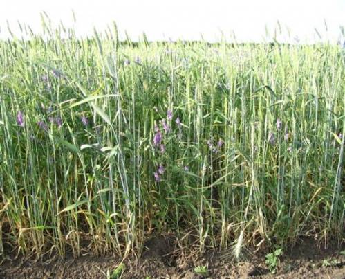 Бинарные посевы озимой пшеницы с озимой викой, фаза цветения пшеницы, 2009г.